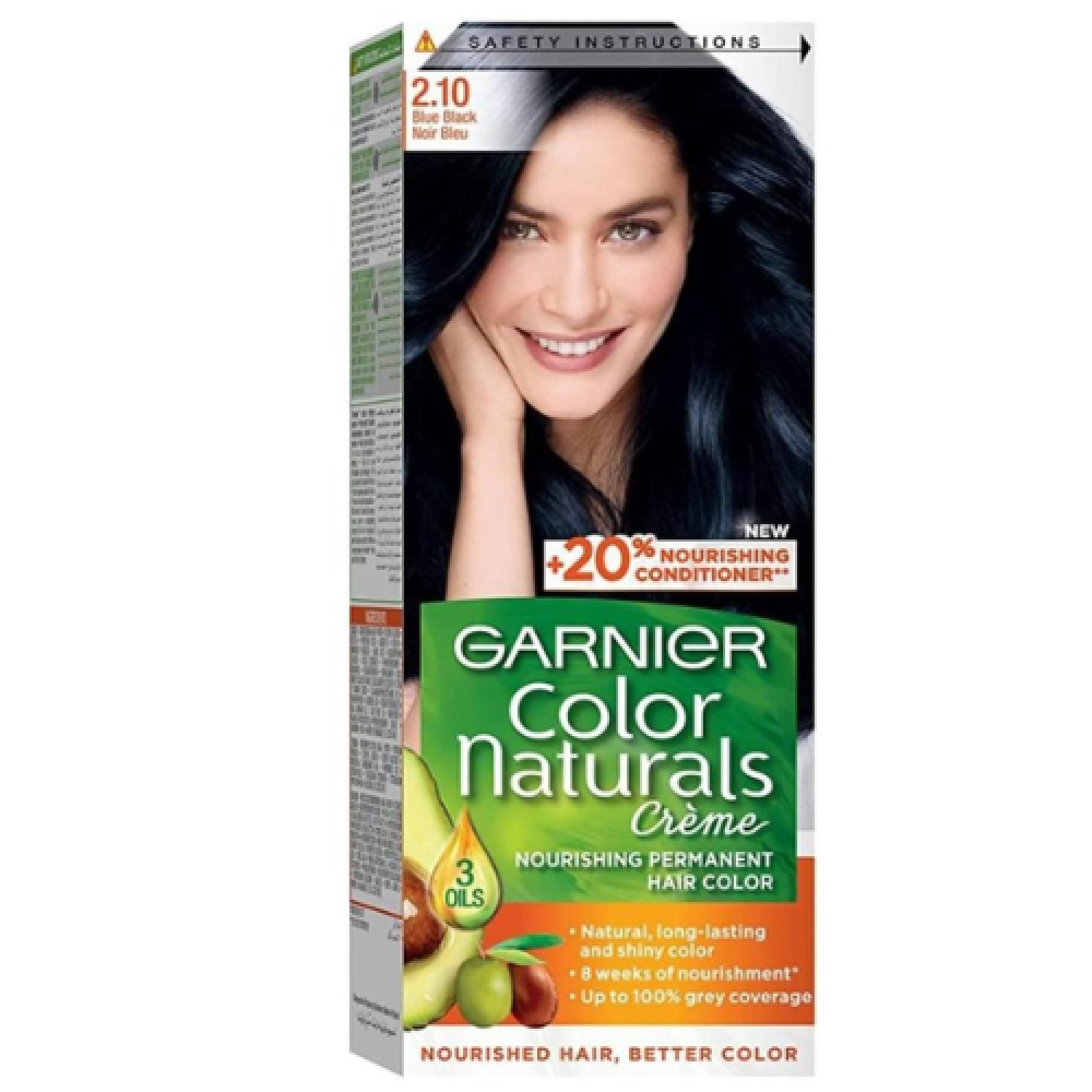 صبغة كولور ناتشرلز دائمه و مغذية للشعرمع بلسم اسود مزرق 2.10من غارنيير:لون طبيعي لامع يدوم طويلا ضد انعكاسات النحاسيهيغذي الشعر عند الصبغة ول8 أسابيعتغطية كامله للشعر الأبيض