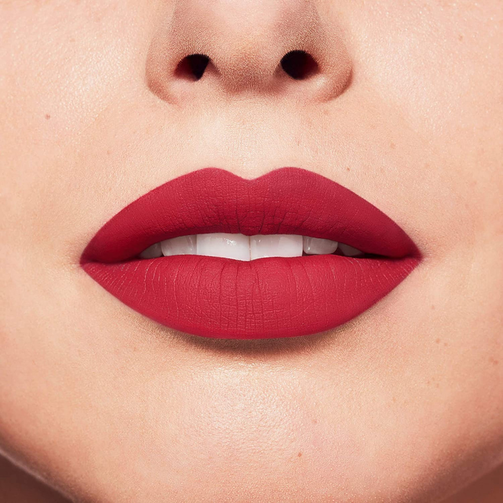 • - ينزلق احمر الشفاه هذا بكل نعومة كالهمسة. لن يتزحزح اللون المصبوغ هذا بمجرد ان يجف! يذوب الملمس المخملي على الشفاه الخالية من المكياج. انسي أنك تضعين احمر شفاه! عندما تريدين لونًا كثيفًا غير لامع (مات) لا يعمل على تجفيف شفتيك سيقدم لك احمر شفاه روج اديشن فيلفيت المظهر الذي تحبينه على هيئة أحمر شفاه سائل يدوم طويلا.