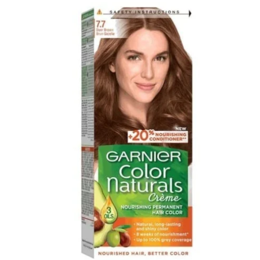صبغة كولور ناتشرلز بني غزالي 7.7 من غارنييهلون طبيعي لامع يدوم طويلا ضد انعكاسات النحاسيهيغذي الشعر عند الصبغة ول8 أسابيعتغطية كامله للشعر الأبيض