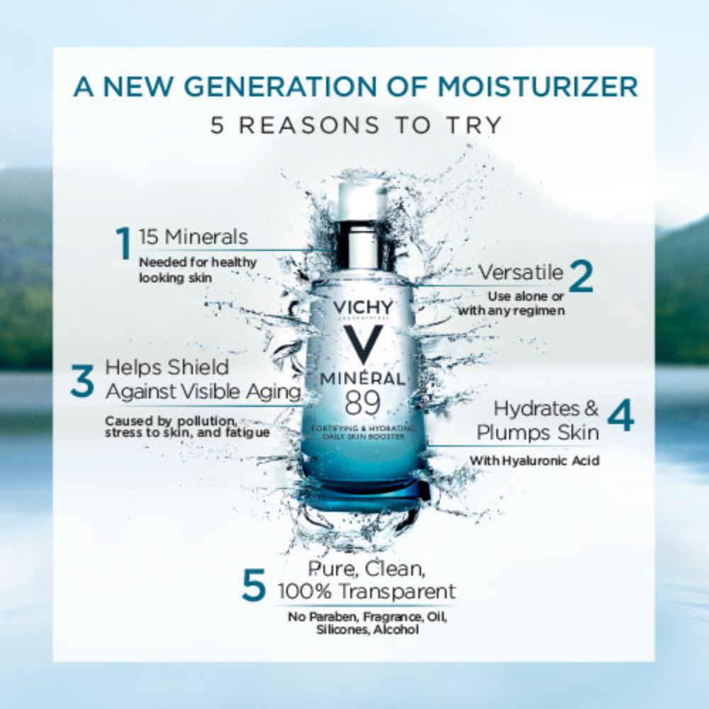 مينيرال 89 جرعتك اليومية لبشرة معززة مع 89% من مياه فيشي المعدنية وحمض الهيالورونيك الطبيعي.