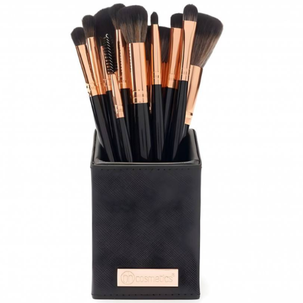 بي اتش كوزماتيكس - طقم فُرش مكياج مميز من 13 قطعة مع حافظة تخزين وردة ذهبية سوداء