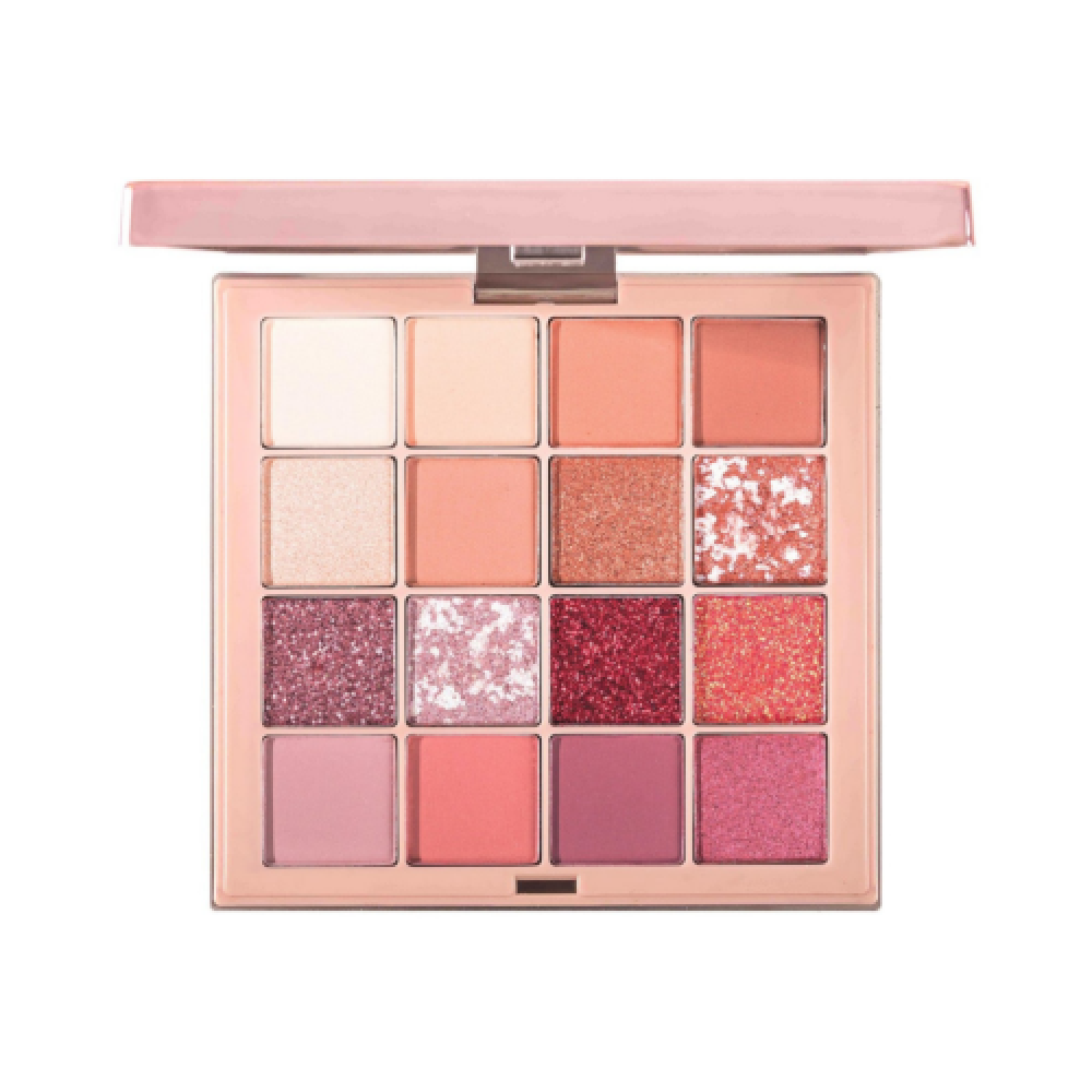 ظلال العيون روز من نيو فيويحتوي على 16 لون تتدرج مابين الالوان المحايدة الى الى درجات الزهري الرائعة يتميز بتنوعه مابين الالوان الشيمر والمات .