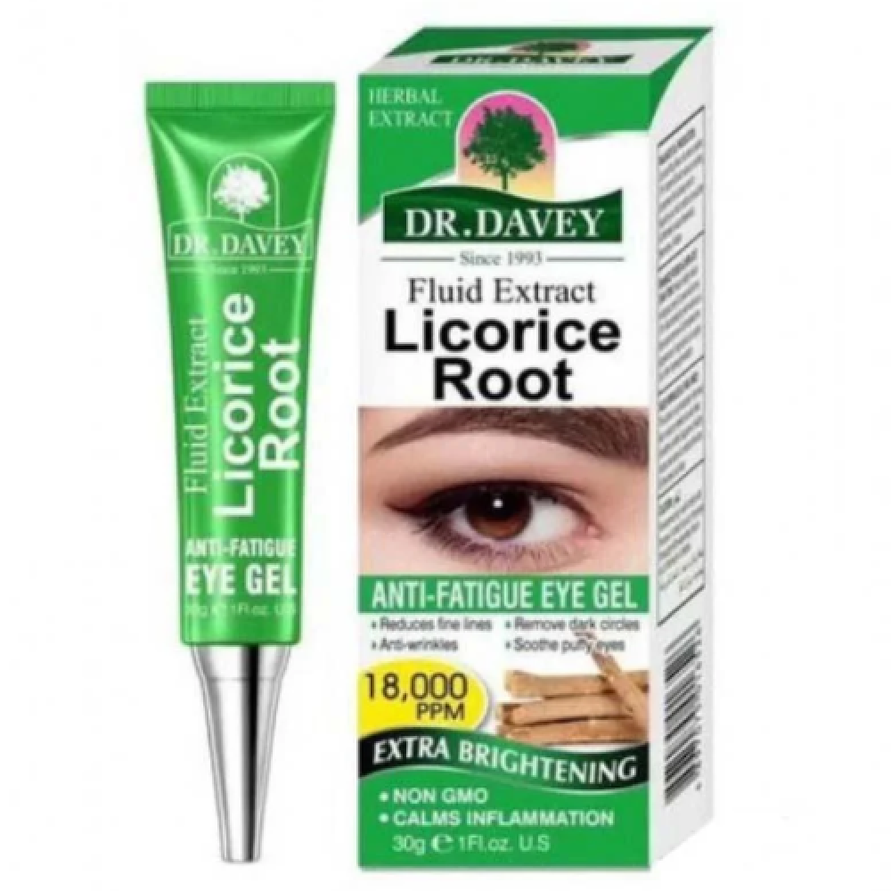 دكتور ديفي جل مضاد لتعب العين بخلاصة عرق السوس (ANTI-FATIGUE EYE GEL) يساعد في تقليل ظهور الهالات السوداء والانتفاخات في منطقة أسفل العين مع لمسة نهائية غير دهنية تترك تحت العينين تبدو رطبة وناعمة ومشرقة وأكثر يقظة. جل عرق السوس للعين غني بتركيبة ترطيب عالية الكثافة لاستعادة الترطيب.